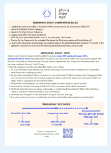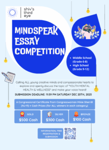 Congratulations to all the “MindSpeak” Essay Competition 2024 by Shiv’s Third Eye participants, for being the fearless change makers and bringing their “VOICE”! The winners of the competition each got a letter of Recognition from Governor Phil Murphy, a Congressional certificate from Congresswoman Mikie Sherrill, a certificate, a trophy and a cash prize up to $500 from Shiv’s Third Eye!